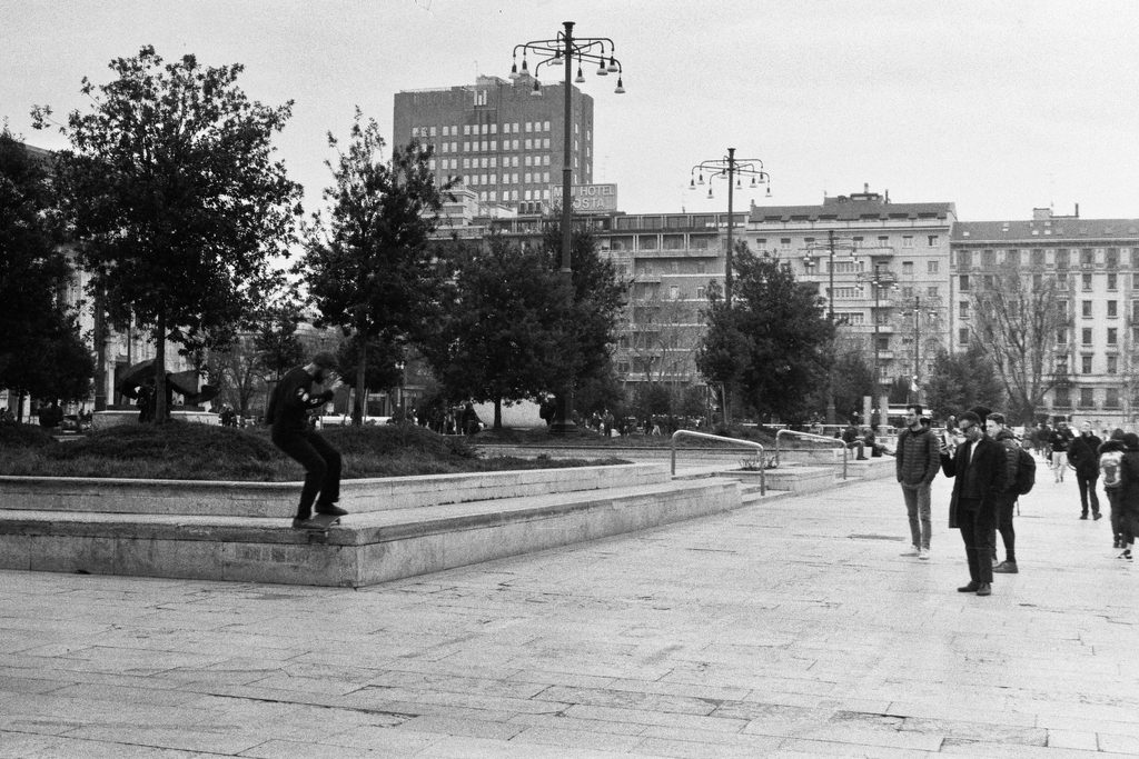 Esatto. Possiamo pure considerarci un po’ come dei termometri d’eventi, dei termometri sociali: quando succede qualcosa stai sicuro che in piazza Duca d’Aosta ci sarà un riflesso di quell’evento, e noi siamo dentro in un modo o nell’altro. Insomma come ogni stazione al mondo anche Centrale ha avuto i suoi momenti di disagio. Noi siamo lì per skateare, ma qualche volta ci siamo trovati in mezzo a situazioni incredibili. La turista a cui tentano di rubare lo zaino, per esempio, e noi cerchiamo di prevenirlo, rischiando grosso. Successe qualche volta che tirarono fuori coltelli, ma fortunatamente il tutto si è risolto senza gravi conseguenze. Il lato sinistro, ovvero verso l’hotel Gallia, è la nostra base. La gente che frequenta la Stazione sa che lì ci sono gli skaters. Cerchiamo di tenere la zona sicura per noi e per gli altri. Anche se uno skater passa veloce davanti ad una vecchietta e la spaventa, viene rimproverato e gli facciamo capire che questo spazio è di tutti e va rispettato come tale. Sentiamo che quell’area è un po’ casa nostra, la teniamo pulita, in ordine. Spesso veniamo visti come dei vandali che distruggono la piazza ma la realtà è che ci teniamo molto allo spot e vogliamo mantenerla più precisa possibile. Ci sono dei buchi per terra causati dai furgoni e dalle vibrazioni della metro che causano disagio non solo a noi che skateamo ma abbiamo visto anche diverse persone cadere o scavigliarsi in queste buche. Quindi a volte ci pensiamo noi a riparare i muretti e il pavimento quando serve.