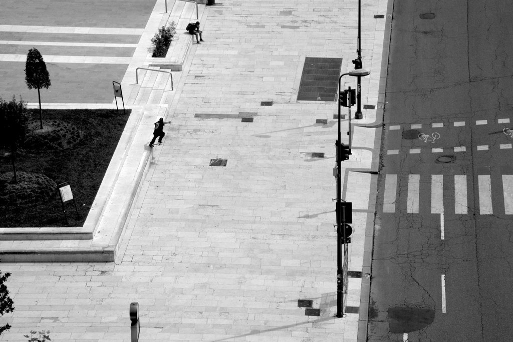 Gli skaters in generale hanno un occhio particolare per vedere la città. Per dirti: noi riusciamo a riconoscere se uno spot si trova a Barcellona o a New York semplicemente perché abbiamo visto talmente tante foto e video che ormai conosciamo i materiali tipici di quella città. Sappiamo distinguere i tipi di cestini usati a Philadelphia o a Valencia. La Centrale ha un aspetto talmente iconico che basta vedere un piccolo angolo di un muretto e uno skater può capire di cosa si tratta. Lo skater guarda l’architettura, dalla piazza al palazzo, dall’asfalto ai materiali utilizzati per le panchine, insomma siamo davvero dei nerd dell’urbanistica. Sembriamo dei matti perché guardiamo costantemente queste cose. Anche nei film! “Guarda che bank! Guarda quel passamano: è perfetto!”