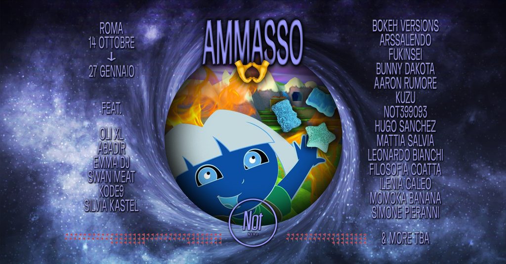 AMMASSO nasce perché a un certo punto ci siamo accorti che Not stava per compiere cinque anni e quindi volevamo festeggiare la ricorrenza in qualche modo. Poi diciamo che ci siamo lasciati prendere la mano e invece di organizzare la solita festa che va avanti per una notte soltanto abbiamo pensato di fare tre mesi di eventi sparsi per tutta Roma, impegnandoci praticamente per (quasi) tutti i venerdì dal 14 ottobre al 27 gennaio del 2023. Il nome viene dal fatto che, be’, è un ammasso di roba: talk, live, dj set, ospiti un po’ di tutti i tipi, un posto diverso ogni settimana…