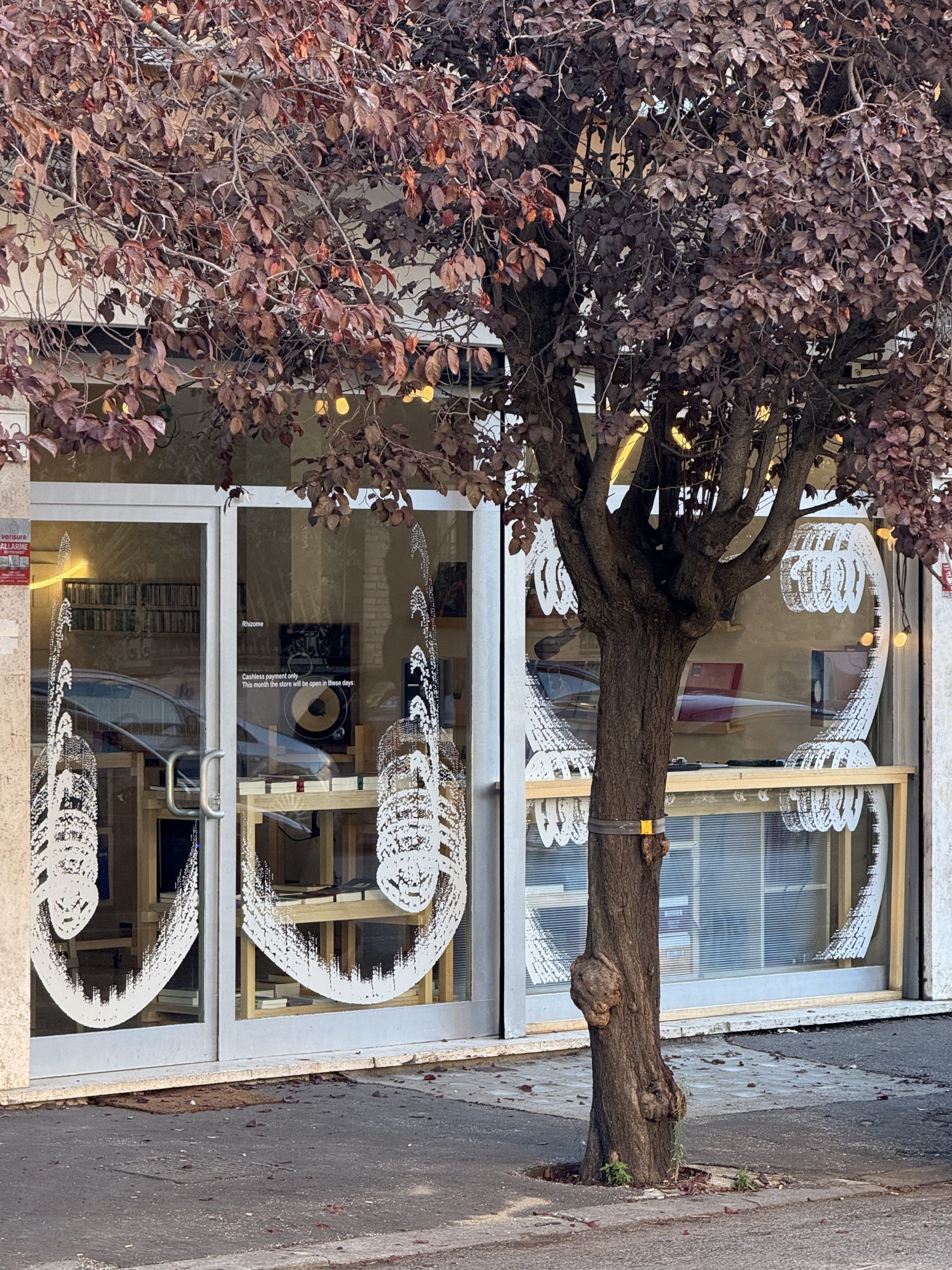 Un giorno ero allo studio di Varsi con Tommaso Salini e vedevo che c’erano questi mobili con le rotelle di legno. L’ho preso e gli ho detto subito che stavo aprendo Rhizome e che mi doveva fare i mobili così. Lui si è messo là ha progettato tutto ad hoc per lo spazio. Io poi quando ho in testa un progetto qualsiasi cosa vedo in qualsiasi angolo del mondo la riporto a quello, in maniera funzionale. Adesso abbiamo aggiunto anche altre due librerie mobili. Oltre ad essere funzionale caratterizza il posto anche a livello estetico, la gente è contenta, spesso sento cose come “mi sembra di stare a East London” o “mi sembra di stare a Manchester” e così via. Attualmente comunque Rhizome è a tutti gli effetti un negozio fisico ma un domani chissà che non diventi una caffetteria aperta anche la mattina. Se poi un domani c’è la voglia di curare un evento in un locale vicino non escludo neanche questo.