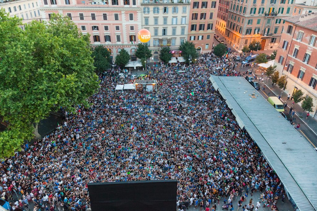 VC: No, posso dire che quella partita fu affrontata bene perché riuscimmo a portare a nostro vantaggio tutto il clamore suscitato. Da un punto di visto più squisitamente politico, non vedevamo l’ora di cogliere un’occasione per andare in periferia e dimostrare che non eravamo solamente i ragazzi del centro storico e che la manifestazione non funzionava solo perché era gratuita e a Trastevere. Abbiamo rilanciato andando a Ostia e Tor Sapienza, con gli sponsor che per fortuna ci seguirono. La Siae poi ci ha dato una mano una volta che dal Liceo Kennedy ci siamo rispostati in piazza, perché il bando era andato deserto e si stava ipotizzando anche il danno erariale. Questo sostegno ci ha permesso di aprire non solo un’arena ma tre. Forse il rischio maggiore c’è stato l’anno scorso perché, senza troppi giri di parole, con vari cambi di governo e di amministrazione non c’erano più diverse condizioni per andare avanti. Abbiamo iniziato un dialogo molto lungo con il Campidoglio e alla fine siamo riusciti a garantire alla città questa esperienza, con un nostro sforzo economico che è stato pari a quello del Campidoglio. Quest’anno invece abbiamo una copertura di budget che ci lascia più tranquilli per fortuna.