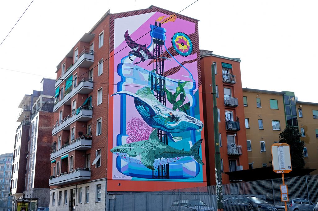 In giro per New York non è raro imbattersi nei suoi lavori: muri mastodontici che parlano con un linguaggio che raccontano molto della sua storia e vissuto. In Italia non tarda a farsi conoscere, legando il suo nome a una serie di progetti sul tema della sostenibilità e tutela dell’ambiente. Da Roma, con il primo murale mangia smog, a Lambrate con un lavoro che fa riflettere sulle cicatrici lasciate dall’uomo sui fondali e la superficie dell’oceano. Lo abbiamo intervistato per farci raccontare il suo percorso, la sua arte e la sua Milano. E ovviamente la sua nuova opera, Anthropoceano, in via Giovanni Viotti 13.