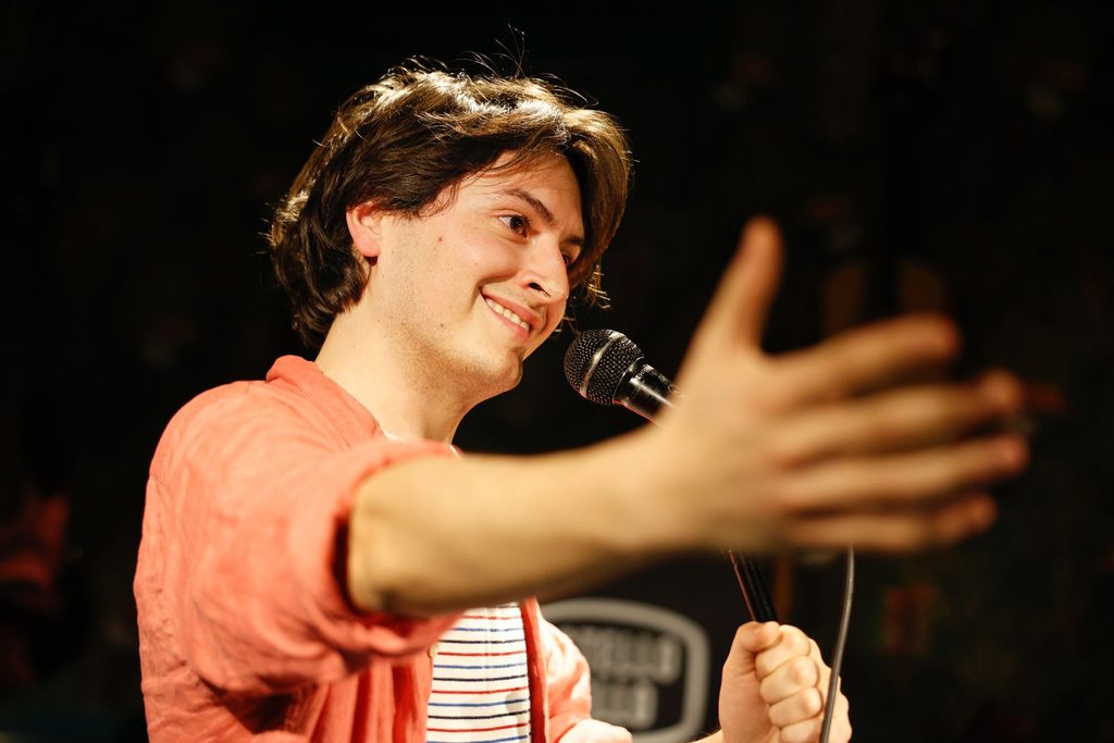 Filippo Capobianco porta con sé l’incredibile sintonia che si riassume nel pensiero storico-analitico. In lui si consuma, o forse meglio dire brucia, lo spazio del palco e la facoltà di scienze fisiche. Il viaggio di questo artista nasce da un laboratorio teatrale e carbura sui miracolosi palchi delle poetry slam, nel 2021 ha debuttato a Milano con il suo spettacolo Mia mamma fa il notaio ma anche il risotto, e quest’anno ha vinto il titolo di campione del mondo di poetry slam.