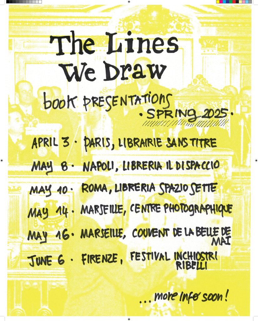 Nel libro, progettato da Ania Nalecka-Milach, i diversi contesti geografici e i loro atti di creazione dell’identità non sono tenuti separati, ma messi in dialogo tra loro nel tentativo di raccontare una storia che vada oltre l’esperienza individuale dei diversi territori. “The Lines We Draw” rompe così i confini imposti dalle autorità (ufficiali e non ufficiali) per proporne altri, discutere il ruolo effimero e ambiguo dei codici stabiliti e delle identità che sopravvivono e si esprimono al di là di essi. Sabato 10 Maggio Lavinia e Manfredi saranno a Roma da Libreria Spazio Sette per presentare il libro.