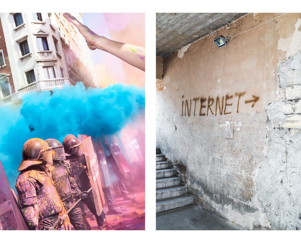 LP: Quando ero adolescente mia madre diceva che nella mia stanza vigeva “l’estetica dell’inverso”. Nell’armadio c’erano i libri e una vecchia Tv rotta mi faceva da comodino. A un certo punto mi si era rotto il motorino, un SH50 di quelli bellissimi di plastica, e me l’ero portato su in mezzo alla stanza per farci una panca. Lei mi lasciava fare tutto e si incuriosiva. Alla fine la mia era solo un’altra interpretazione, davo un ordine al mio stare al mondo in quella maniera lì. Il disordine non mi ha mai preoccupata, sono cresciuta in una famiglia altamente disfunzionale e ho imparato a viverci insieme con amore e rispetto per quelle “follie” che non potevo evitare. Riuscire a trovare una logica all’interno del flusso scomposto (o a volte accettare di non trovarla affatto) mi ha favorita nella navigazione delle difficoltà personali e di quest’epoca. Oltretutto, la semplificazione mi sembra ipocrita e non mi soddisfa praticamente mai. Come poterla applicare a un tema così complesso come quello di questo libro? Piuttosto abbiamo preferito lavorare a strati e non aver paura di chiedere concentrazione, modalità di cui abbiamo estremo bisogno oggi e che dobbiamo recuperare. La sfida piuttosto è trovare maniere stimolanti, ma non incomprensibili, per trasferire nelle mie fotografie questa non-paura del caos.