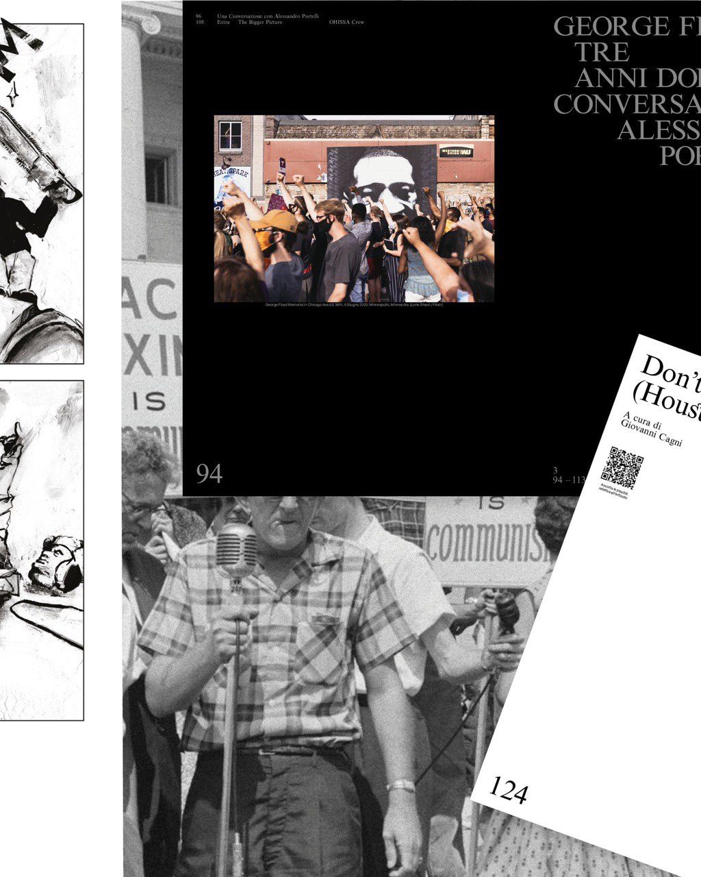 GS: Come ti dicevo “Gang Signs” è nato proprio perché era un argomento su cui vedevamo tanta superficialità, ma non tanto nella scena hip hop italiana, ma dalla parte del pubblico in ascolto. Poi è nato “Soul Food” che invece arriva da una passione mia personale per il cibo. Dopo un viaggio negli Stati Uniti del sud dove ho fatto un tour in varie città, avevo notato che su molti ristoranti erano segnalati come black owned. Mi sono accorto che il tema del “Soul Food” è in realtà connesso a quell’attenzione che qui in Italia viene ultimamente dedicata alla storia dei piatti italiani diventati poi parte essenziali della nostra cultura. L’approfondimento su George Floyd è stato creato per l’anniversario di tre anni da quell’avvenimento e abbiamo voluto coinvolgere Alessandro Portelli che è un professore universitario ormai in pensione, ma che è una pietra miliare sugli studi storiografici in Italia. La sua partecipazione è molto importante perché è stato lui a fondare un certo tipo di approccio dove si argomenta facendo parlare le fonti, andando in profondità e non fermandosi alla superficie. Negli anni sessanta è stato tra i primi ad andare negli Stati Uniti a fare ricerca per l’Italia sulla cultura popolare e sulla musica, restituendoci dei lavori incredibili. Mentre per “50 anni di Hip Hop” diciamo che l’anniversario ci è venuto incontro e per realizzarlo abbiamo voluto coinvolgere giornalisti, rapper e autori e dare in mano ad ognuno di loro un focus su una particolare scena artistica in modo da creare una vera e propria mappa del rap americano.