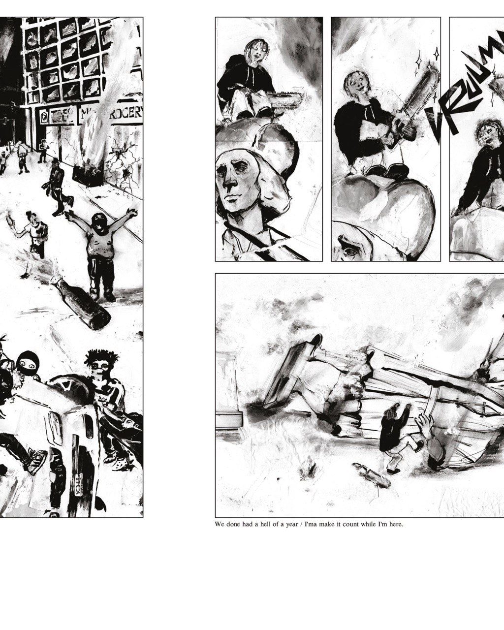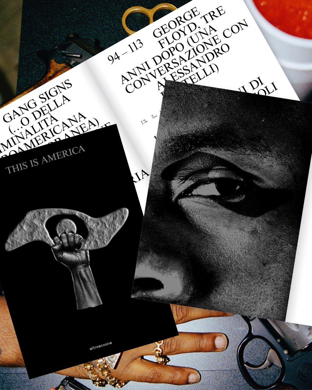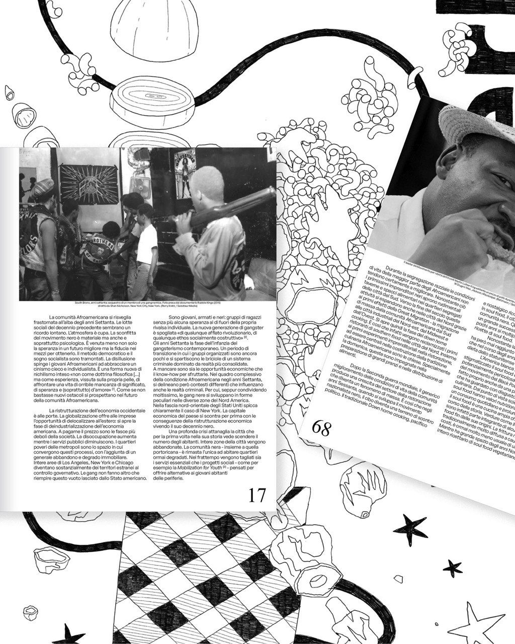 GS: Nel cartaceo di “This is America” per ogni contenuto uscito su oltreoceano.eu c’è un contenuto extra: per “Gang Signs” c’è un articolo scritto da Stefano Ricaldone, su “The Wire” la miglior serie televisiva sulle gang della storia; in relazione a “Soul Food” ci sono due illustrazioni di Giacomo “Boyz” Calderoni che si ispirano a due ricette presenti nell’articolo; per la parte dedicata a George Floyd c’è un bellissimo fumetto fatto da OhIssaCrew, che è un collettivo di fumettisti di Bologna; per i “50 anni di Hip Hop” c’è un articolo narrativo di Daniele Benussi. Ci piaceva l’idea di aggiungere dei contenuti che potessero aumentare anche la fruibilità del volume e renderlo ancora più completo.