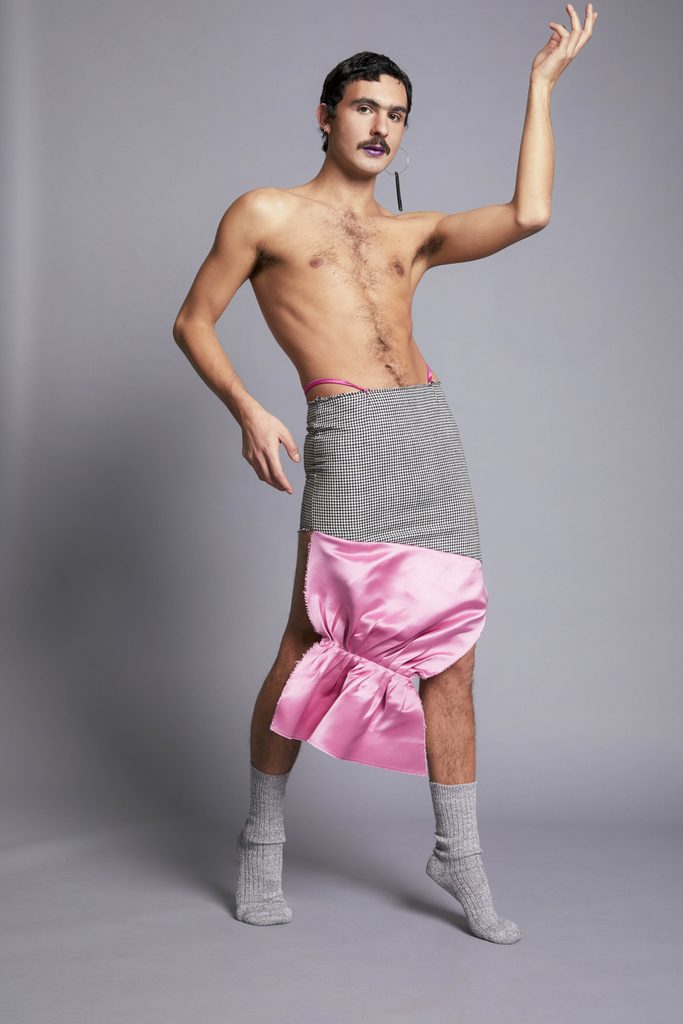 Oggi mi sto concentrando sulle mie radici, che sono da sempre dentro alle mie collezioni, tenendo sempre ben presente il mio essere queer, abitante della comunità lgbt a Porta Venezia. Pensa che la mia tesi era sul pranzo della domenica, ispirata alle mie nonne. Così come la collezione dell’anno scorso, che era intitolata 25.04.1993, che è la data del matrimonio dei miei genitori. Volevo fare questa festa al Sud, tutta basata su un’idea di condivisione con cui sono cresciuto, che mi ha insegnato la mia famiglia, il territorio, un certo modo di vivere in comunità, assieme. Un esempio a caso, è che io e l’Elinor ci consideriamo quasi fratello e sorella, se arrivo con tre buste di mozzarella gliene porto una subito a lei, e lei mi regala sempre il berberè per mia madre.