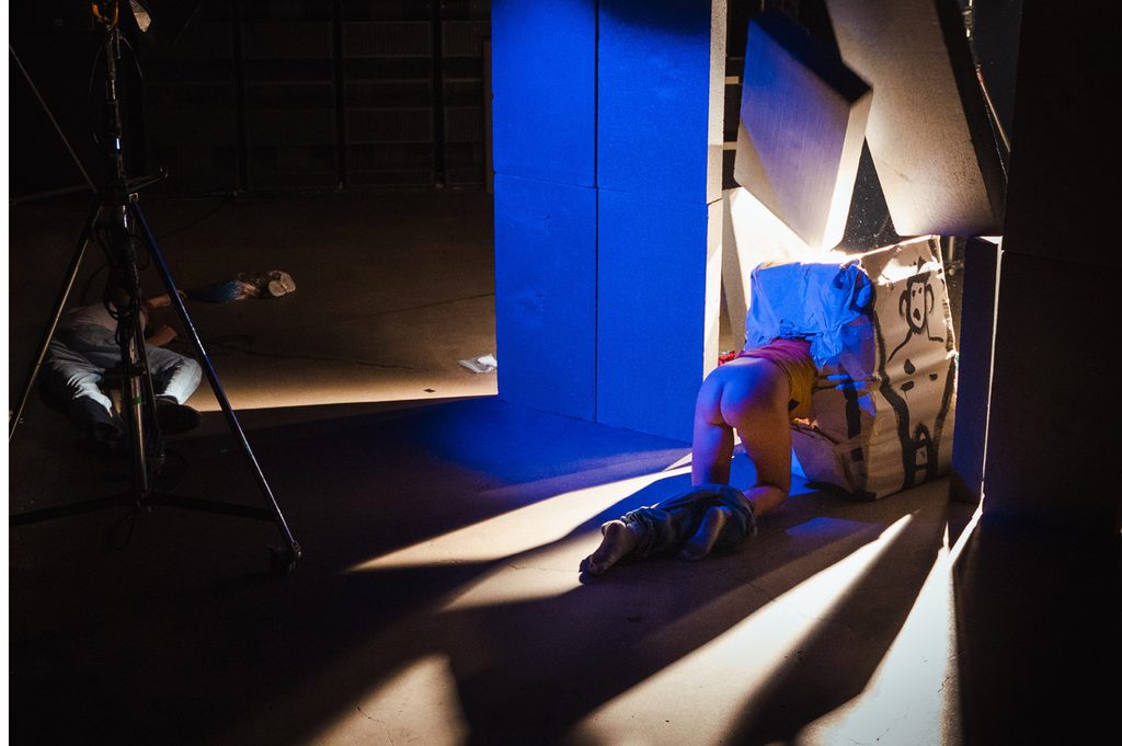 Ilenia Caleo: Abbiamo lavorato su dei materiali d’archivio – immagini prevalentemente, ma anche testi, disegni, canzoni, poesie. Ci abbiamo messo le mani dentro e abbiamo impastato, rimescolando tutto. In particolare, abbiamo costruito un catalogo di immagini che arrivano dalla scena queer di New York di fine Settanta/inizio Ottanta: i pier, i capannoni (allora abbandonati, ora gentrificati dal mercato dell’arte contemporanea) dove la comunità frocia si ritrovava per prendere il sole, stare assieme e scopare. Un punto d’incrocio interessante: sperimentazione di vita e sperimentazione artistica. Artisti*, fotografi, writer, poeti e attivisti gay li attraversavano, ecco perché esistono tantissime immagini di quel mondo. È un attimo prima dell’arrivo dell’Aids, prima che il virus e le politiche sanitarie omofobe del governo Reagan si portassero via tutte quelle vite. Quelle storie ci arrivano anche attraverso la perdita, il trauma, il dolore: della morte e dello stigma. E poi lo spazio, lo spazio urbano: selvatico, non organizzato, occupato. Ci mancano, nelle città, spazi così. Il cruising per noi è una pratica che genera questo tipo di spazi a margine, oltre che una pratica sessuale. Guardiamo a quel passato come si guarda a un futuro, come fosse fantascienza. Così lo liberiamo, ce ne appropriamo, diventa nostro. Inventiamo una lingua, un mondo. Le immagini le abbiamo a lungo proiettate, incorporate. Poi, via via, si sono trasformate, sono diventate stati del corpo: uno stato di eccitazione/un desiderio struggente/una pienezza che non si consuma/un’ombra che passa. Sono diventate grammatiche sceniche: non finire, non passare da una scena all’altra, ma prolungare fino all’estenuazione, fino a che una cosa si trasforma in un’altra. Ci interessa quella zona ibrida, mescolata. Impura, come le acque dell’Hudson. Non ci sono ricordi: non abbiamo fatto parte di quel mondo, abbiamo per questo scelto materie distanti. Per quelle di noi che sono socializzate donne o non binarie o trans, gli spazi del cruising sono inaccessibili. Anzi, lo spazio urbano è per noi spesso un reticolo di pericoli e di paure. Sono memorie del futuro. Mettiamo le mani negli archivi e impastiamo, per fare nuove drammaturgie. Rimestare il presente, non per documentarlo, ma per infuocarlo.