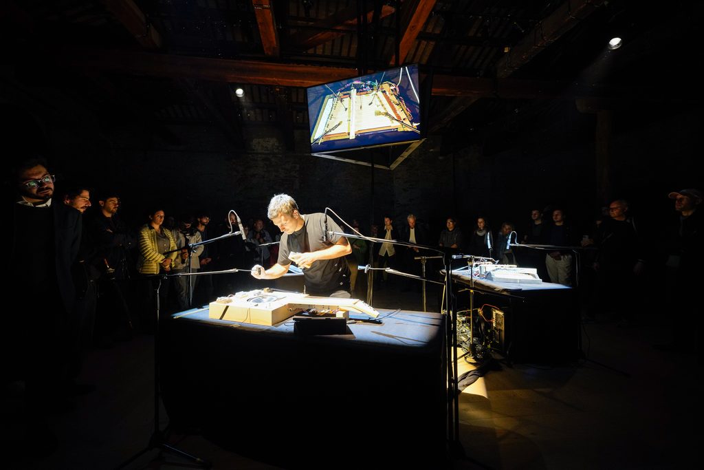 Per quanto riguarda il collocamento del mio lavoro non saprei ben dire. Mi avvalgo dell’aiuto dell’amico e collega Luca Guidarini che qualche settimana fa durante la serie di seminari e incontri sulla musica del XXI secolo tenutisi presso il dipartimento di musicologia di Cremona ha definito il mio lavoro come una sintesi delle varie pratiche tipiche della nuova liuteria più recente: sintesi digitale, costruzione strumentale, progettazione di sistemi di amplificazione e diffusione, utilizzo di elementi acustici ad attivazione elettromeccanica, filtraggio del suono in tempo reale. Temo di non saper essere più preciso, al momento.