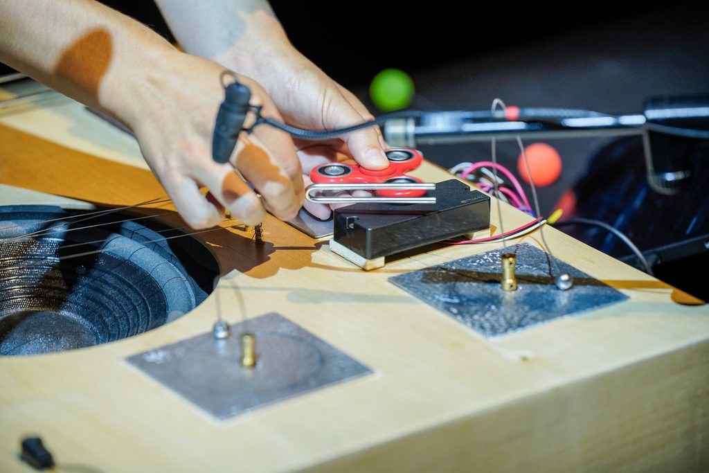 FM: È una domanda a cui non so rispondere né in generale, né se ci si riferisce nello specifico ai brani che verranno eseguiti il 2 luglio per Hyperlocal Club Centro, ma ci provo. Per quanto riguarda Machines Inside Me, il brano con diversi strumenti auto-costruiti, è stato composto senza pensare a ciò che si vede, all’aspetto degli strumenti o alla disposizione dei materiali. Dunque, teoricamente nasce come un brano da ascoltare, non come una performance con un importante impatto visivo. Certamente ho notato che molto spesso il pubblico (ma anche gli addetti ai lavori) sono molto interessati all’aspetto degli strumenti, alla relazione tra ciò che vedono e ciò che sentono, dunque al gesto dei performer. Quindi, per cercare di dare una risposta chiara, ritengo che per questo brano non sia indispensabile la parte visiva per comprendere ciò che avviene a livello sonoro: è un caro vecchio brano di musica che può essere registrato e ascoltato in auto. Tuttavia, mi rendo conto che la componente visuale ha un suo fascino collaterale, e può aiutare il pubblico. Per quanto riguarda il secondo brano (che in realtà è il primo), This is my violin!!11!1!11, in questo caso l’aspetto visivo è invece molto importante non solo per il pubblico ma anche per me. Credo che il brano sia autonomo nella sua componente esclusivamente sonora, tuttavia vi è una fortissima relazione (fisica e concettuale) tra il suono e la gestualità performativa che è un po’ il cuore pulsante del brano. Non dico altro perché sarebbe uno “spoiler”. Temo infatti che questo brano, e soprattutto la sua componente visuale, abbia il problema dei romanzi gialli: se sai il finale diventa meno interessante la fruizione.