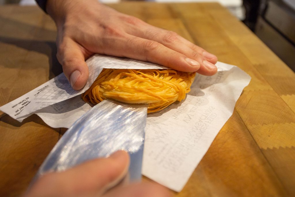 Ormai ci siamo tutti abituati ai bao, i panini morbidi cotti al vapore che troneggiano anche nei menu di ristoranti e gastropub. La sino-avanguardia però è altrove: nella croccantezza. Un po’ come quando si va in una pasticceria napoletana e cala il silenzio quando si chiede una frolla e non una riccia. Il paragone con la sfogliatella non è casuale, perché è con un procedimento simile che Chen prepara i panini che serve nel suo JiaMo Lab di via Bergamo, a due passi dal MACRO. Medaglioni croccanti che sembrano fritti, ma che in realtà sono al forno, ripieni di carne stufata e brasata buonissima.