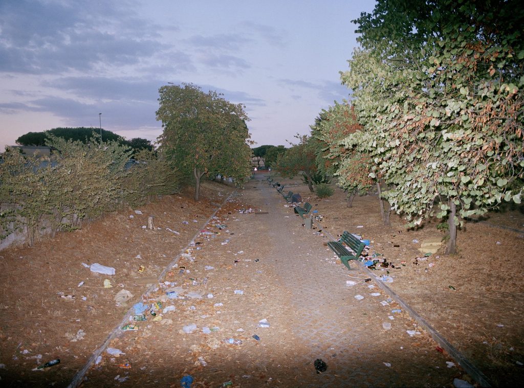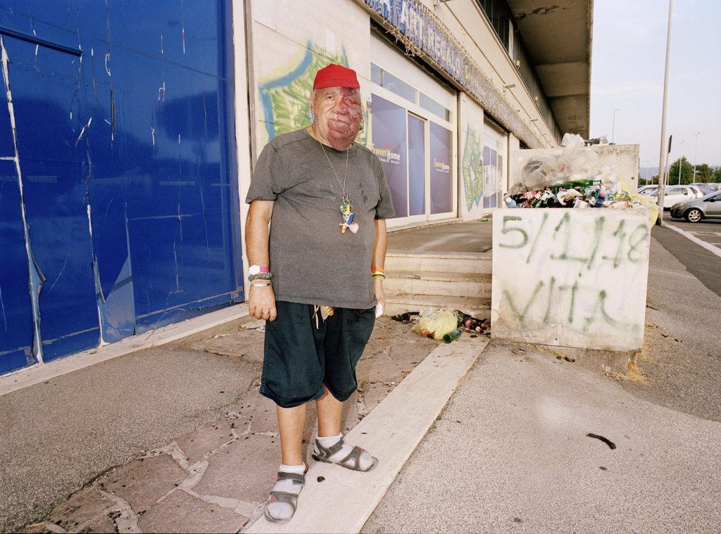 Roma è dove sono nato e cresciuto. Qui mi piace scattare in diversi modi. Il primo è immaginare gli scatti, studiarli a lungo e poi realizzarli. Ad esempio tutte le foto che ho realizzato insieme a Federico Tribbioli, Filippo Silli e Maurizio Montesi con il collettivo ARTCOCK, tra il 2006 e il 2012. Questa pratica l’ho portata avanti anche da solo, ad esempio nello scatto “ESTATE ROMANA” o nello scatto “GRAFFIATI DAGLI ANGELI” di Fellini-Pasolini, una sfilata senza permessi di una ventina di personaggi scelti con cura, lungo i binari di Scalo San Lorenzo alle 13:40, ovvero il momento in cui il sole, in quel giorno, si allineava tra le due tangenziali e proiettava un raggio di sole sul pavimento uguale a una passerella. Per la mia ricerca urbana e documentarista esco di casa, fisso una destinazione e cammino per 20/30km aspettando di incontrare qualcuno che mi interessi. La stessa cosa la faccio anche in macchina cercando situazioni nuove o personaggi assurdi. In entrambi i casi mi piace fotografare le persone e di solito ne vengo attratto come fosse un colpo di fulmine. Non ci penso troppo, non c’è una categoria prefissata.