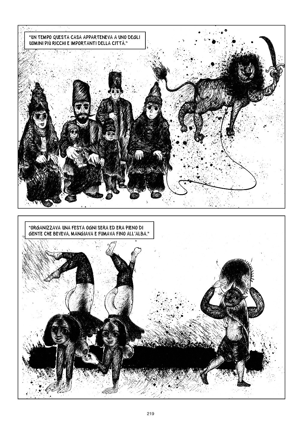 Molte volte ho sentito affermazioni tipo “i limiti aumentano il livello di creatività”, dette anche da alcuni artisti e da scrittori che hanno vissuto la censura. Per me è sbagliato associare la censura a quel meccanismo ben diverso per cui chi cerca di aggirare i limiti riesce magari a creare qualcosa di innovativo. La censura ti entra nel sangue, sempre di più. Nel mio caso e nella mia vita in Iran non ho vissuto nemmeno un giorno in cui mi sia sentito libero di esprimermi. So bene che cosa fa la censura, perché ho vissuto in mezzo a contraddizioni soffocanti. Leggendo la mia storia uno può dire “che bello”, perché ci sono degli episodi che riguardano la scoperta di materiali proibiti, che diventavano fonte di ispirazione. Ma è bello e divertente solo dentro la storia, da lontano. È come quando qualcuno dice “ma che vita avventurosa… quante storie…”, ma che ne sa se io desideravo piuttosto vivere un’infanzia meno avventurosa, ma più sana e tranquilla? La censura quando regna su un paese ormai da cento anni non è solo un elemento da studiare e da interpretare. Dentro quella censura sistematica i talenti muoiono già prima della nascita. La censura non ti lascia fare Letteratura. E dalla censura non nasce nemmeno la vera arte, secondo me, ci sono poche rare eccezioni. È una malattia non così curabile la censura. E quando prende in mano tutto il potere e tutte le risorse che potevano essere al tuo servizio, se accetti le regole, tu stesso diventi figlio di quel sistema. Quando ero in Iran ed esponevo nei luoghi underground (poche volte nelle gallerie con i disegni meno inquietanti secondo le regole) facevo disegni molto più arrabbiati perché sentivo la necessità di essere contro il sistema, ma ero così solo che non avrei potuto continuare su quella strada, sarebbe stato impossibile lavorare disegnando. Oggi io ho pubblicato un fumetto, e sono certo che c’è gente in Iran con grande talento che potrebbe fare lo stesso. Ma dove sono questi disegnatori che raccontano? Il sistema ha seppellito la gran parte di loro che avevano vissuto in un altro luogo facendo cose grandi e di cui oggi non sa niente nessuno. Non parlo solo del passato, parlo di oggi, di quel che succede ancora oggi. Gli artisti che rimangono o smettono di lavorare o devono accettare le regole del regime che ti censura; oppure devono partire e lontano dal proprio paese rischiare di perdere tutti i materiali d’ispirazione più naturale. Non dico che è impossibile inventare un metodo nuovo contro la censura, ma secondo me arriva un giorno in cui non ce la fai più. La censura ti mangia piano piano.