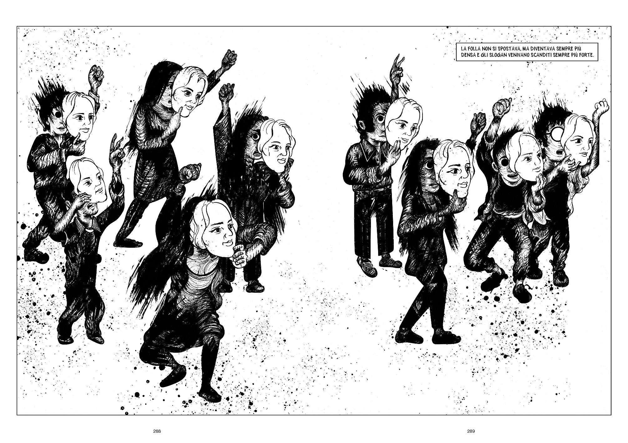 In tutto il libro ci sono comunque diversi disegni singoli che raccontano le cose senza le didascalie, perché volevo inserire anche qualcosa della mia identità di disegnatore che fa cose senza il testo, lontano dalle preoccupazioni e considerazioni legate al mondo del fumetto e le sue regole.