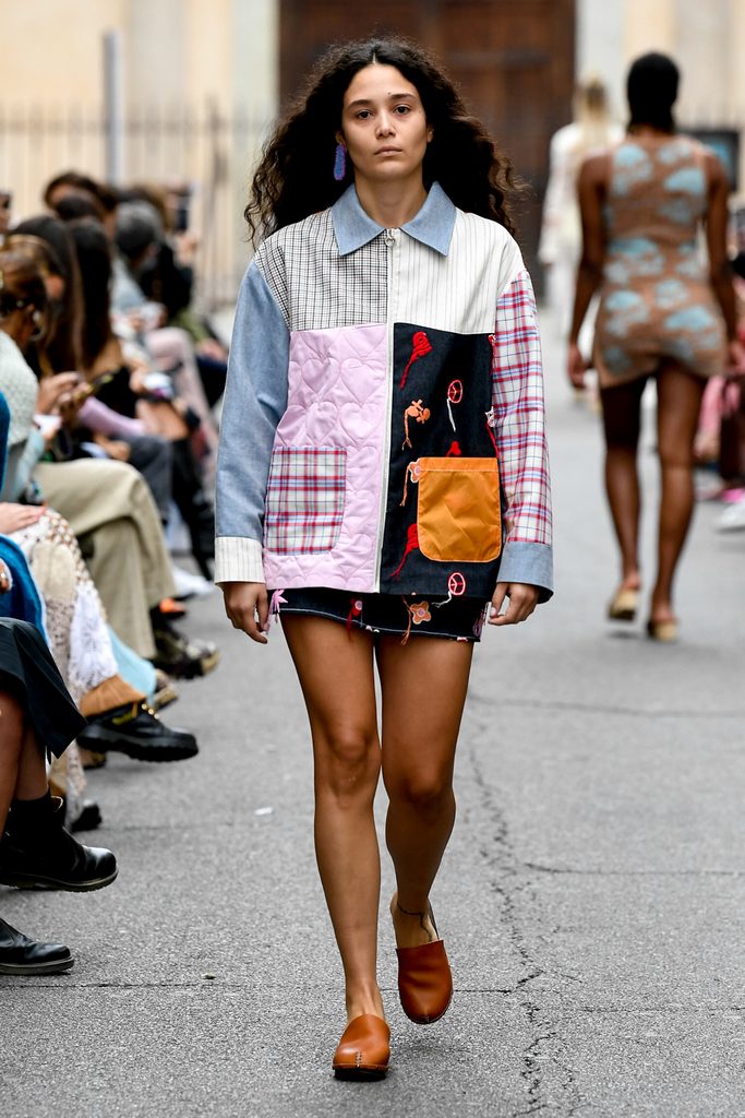 Auguri per sempre; questo il titolo dato alla collezione SS2021 dello stilista bolognese Marco Rambaldi (classe 1991). La reference è la fanzine ante litteram firmata Fernanda Pivano ed Ettore Sottsass. Il risultato? Un mega-mix di cuori multicolor, cellulosa e tessuti che si è riversato un sabato mattina in Via Lecco tra fashionisti e rappresentanti della cultura contemporanea. Tra il pubblico della sfilata: Milovan Farronato, Jonathan Bazzi, Venereus e Generic Animal. E qualche sciura affacciatasi sul balcone. La moda si è presa la strada, ma non per questo è diventata di strada – a simbolleggiare come “La Strada” sia ancora quel circo borghese immortalato su pellicola da Fellini nel 1954.