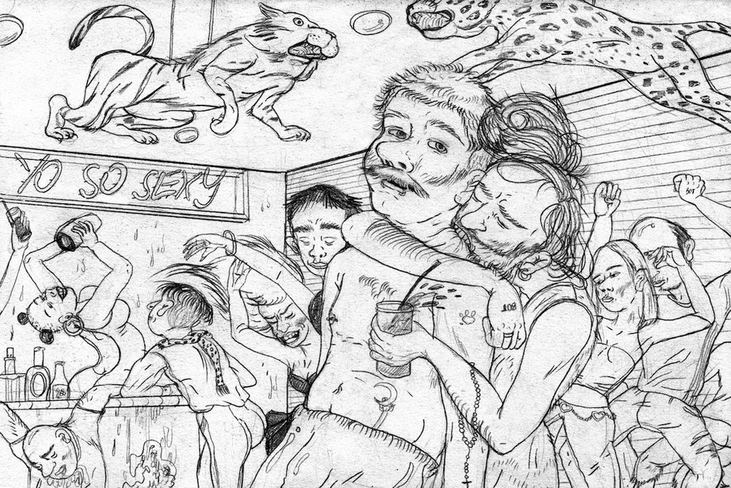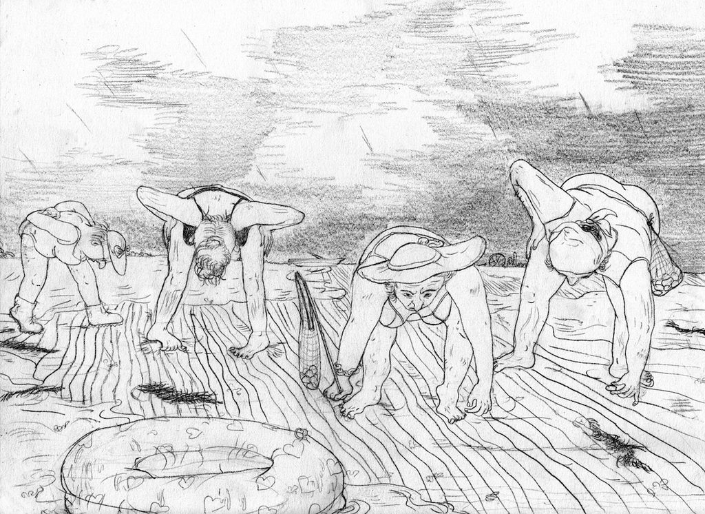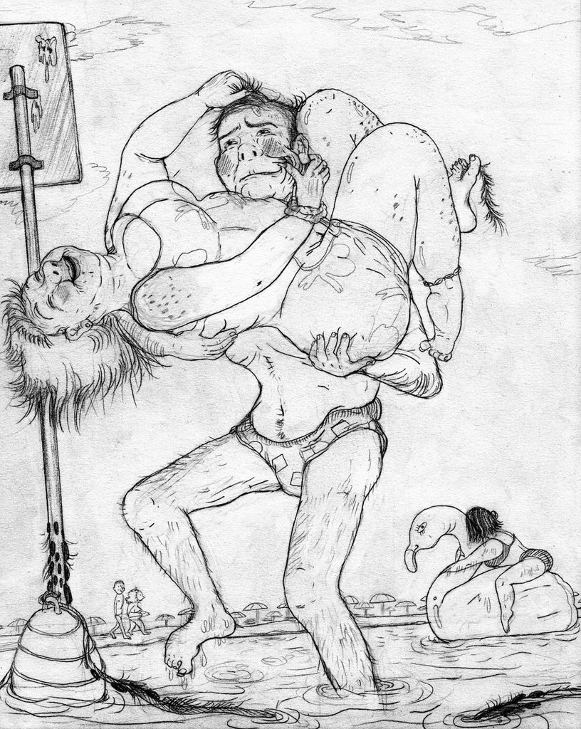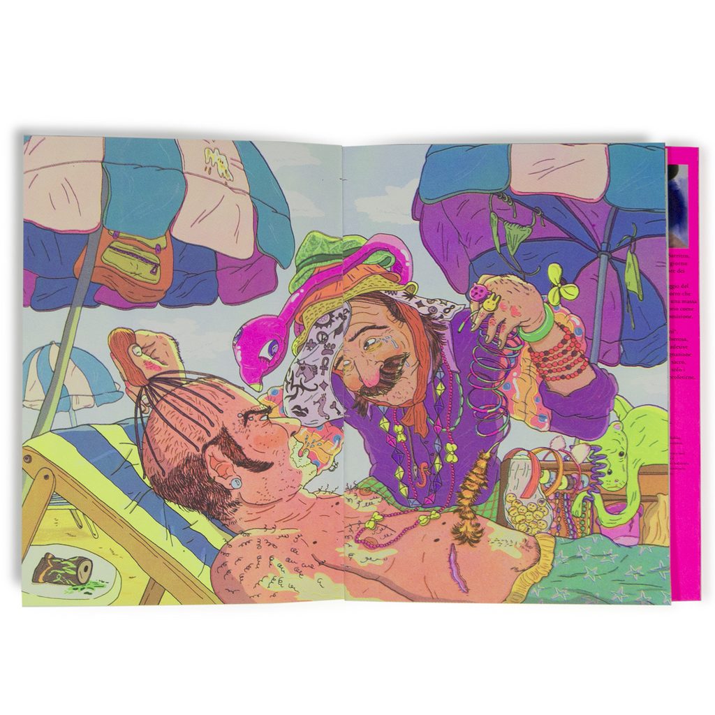 Un condensato di tutto questo è la sua Marina Godolina, lavoro nato per la tesi di laurea all’Accademia e diventata nel 2021 una pubblicazione per Strane Dizioni. Marina Godolina offre un ritratto grottesco e ironico della fauna che popola il paesaggio della riviera adriatica nella stagione estiva, tra lavoro stagionale, serate in discoteca e un mare ben poco appetibile.