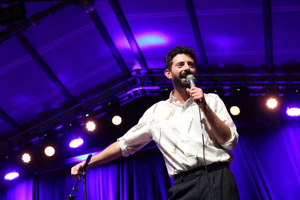 La prima data l’ho fatta all’Eur Social Park questa estate, il primo giugno. Un posto “storico” per me, trattandosi dell’ex Bibliotechina, dove andavo a ballare ai tempi dell’università. È andata benissimo, c’era un sacco di gente e il posto anche aiutava: d’estate, con tutti quei pini marittimi. Io comunque ero terrorizzato perché mia madre aveva sentito qualche battuta mentre provavo a casa prima del debutto e i suoi commenti erano stati “Non fa ridere”, “Questo non lo capisco”. Ti pare che dopo aver lanciato otto date per l’Italia tu mi dici che non ti fa ridere niente!? Infatti ho vietato a mia madre di venire alla prima! I miei li ho invitati più in là, alla data di agosto al castello di Santa Severa, e comunque li ho fatti sistemare nella zona più in ombra del pubblico, perché non volevo vedere mia madre che per la prima mezzora stava a braccia conserte senza farsi neanche una risata!