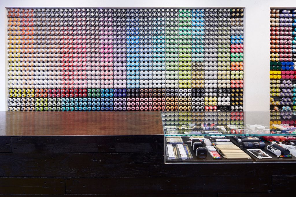 Alcuni sono più solitari, però è facile che più persone tendano a scegliere dei colori insieme perché faranno qualcosa di coordinato. Poi nel momento in cui sei qui, compri, scambi due chiacchiere con noi. I più giovani trovano in noi persone appassionate con una certa esperienza. Quando io andavo a prendere spray al negozio, me li vendeva una signora anziana, quindi non potevo chiedere e non avevo informazioni. I clienti ci fanno molte domande specifiche tipo “mi dai un tappino più fine?” “che tipo di bombola è?”, e qui hanno la possibilità di venire in un posto in cui trovare informazioni tecniche e anche storiche. Che poi è la base di tutto, secondo me, se fai una cosa devi avere un minimo di concezione di come funziona.