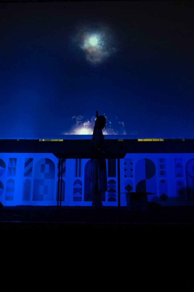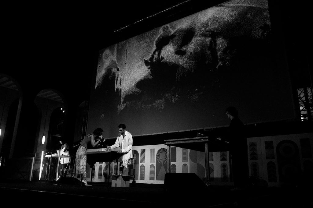 Lo abbiamo denocciolato, osservando i comportamenti di chi vi prende parte. Sul palco è stato messo in scena un rito futuro. Viviamo in un momento storico particolare: quello che conoscevamo sta crollando e volevamo immaginarci elementi interessanti del rito e restituire quello che per noi è il suo vero cuore, ovvero incontrarsi con l’altro. È un’azione che ti trasforma e questo prevede per forza l’incontro con lo sconosciuto, il diverso da te. Abbiamo sviluppato una performance audiovisiva che per noi forse è l’inizio di un percorso che proseguirà.
